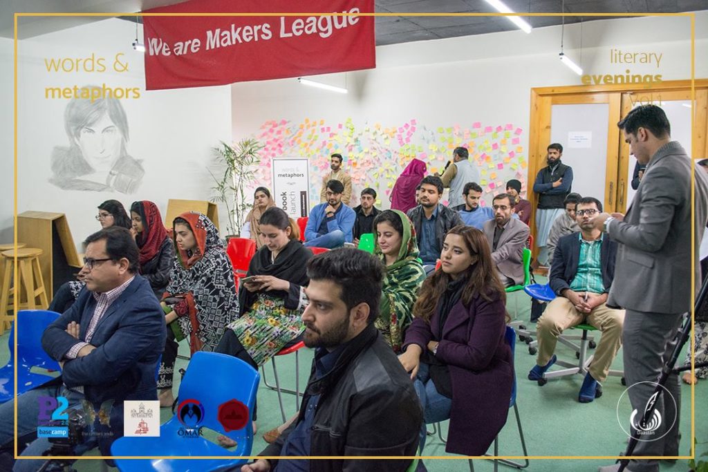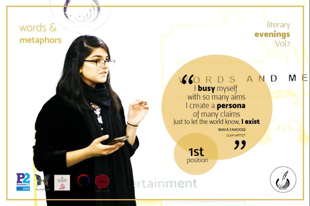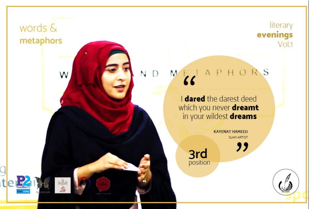 Somewhere in the humdrum that was the year 2017, Daastan’s co-founder Sidra Amin took it upon herself to launch a platform that worked solely for the propagation of literature through offline events. For months before the forum was founded, Sidra hunted for literati and like-minded individuals with a heart filled with sheer love for literature and related arts. In mid-summer, it finally came into being, and was named ‘Words and Metaphors’. They had the pleasure of introducing to KPK its very first spoken word performance by their debut artist Mr. Kayenaat Hameed Khattak.